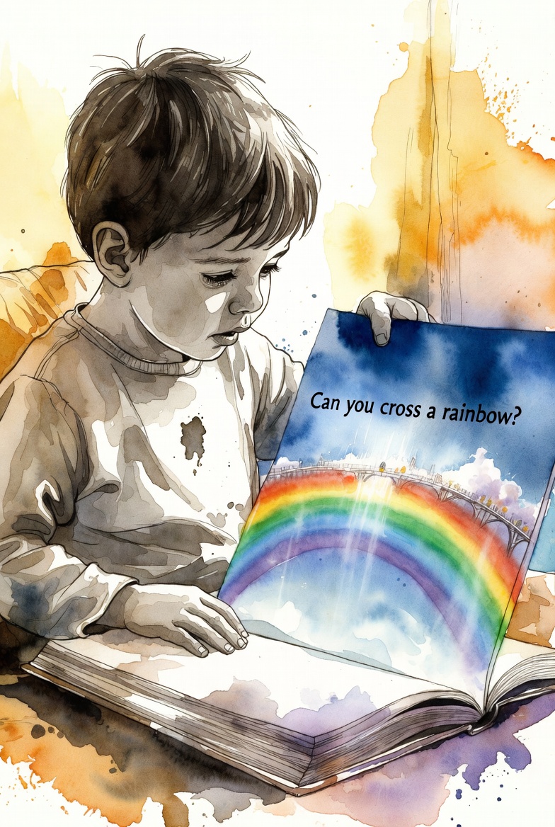 絵本を読んでいた5歳の息子が、登場するキャラクターが、虹を渡る場面を読んでいて、 「虹って渡れるの」と聞いてきた。 最近、図鑑などを読むようになってきて、雲が水滴でできていることなど、 科学的なことにも興味が出てきたようです。 ところが、お気に入りの絵本では、キャラクターが虹を渡っていきます。 「虹って渡れるの」に対する、とっさに答えた私の答え。 「本物の虹は水と光だけど、絵本の虹は橋だから渡れるよ」 心の豊かな子に育って欲しいと思っています。
