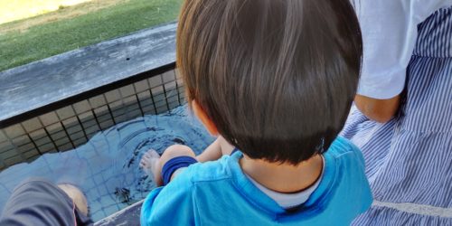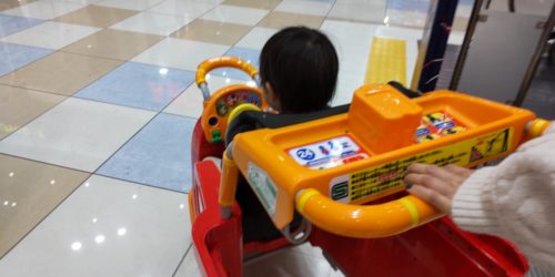 近所のショッピングモールにお出かけ。普段あまりこういう乗り物に乗りたがらないのですが、この日は新しい靴を履いて歩きづらかったようです。