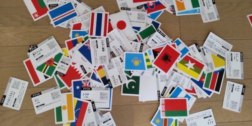 昨年末から国旗に夢中です。 すでに100カ国近く覚えており、200カ国全部覚えてしまいそうな勢いです。 カタカナを読む練習や、将来の地理の知識にもなるので、良いことだと思います。
